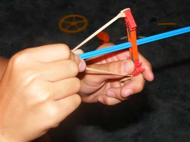 Conecte la parte principal a los conectores de ángulo recto. Vuelva a colocar un azul, naranja o una barra roja en el tirón de agujero conector naranja y liberar. También no dude en copiar y añadir a este diseño, pero me dan crédito.