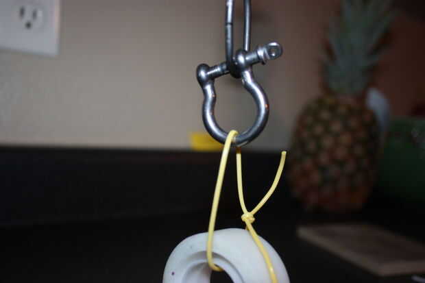 Ate la cuerda en el pasador del grillete. Asegúrese de que la cadena está en el pasador y la cadena/cuerda se une al grillete.
