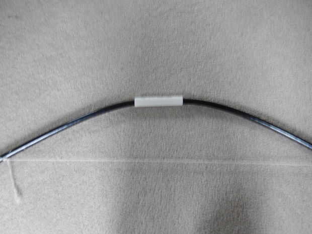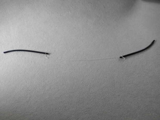 A continuación, tienes que cortar un trozo de cuerda que está sobre 6-8" ya que los dos tubos puesto extremo a extremo. Luego, tienes que atar la cuerda alrededor de los extremos de los tubos que tienen la muesca muy firmemente para que la cadena no se salga el tubo cuando se pone mucha presión en él. Una vez hecho esto, tomar uno de los tubos y coloque el extremo que no tiene la cuerda atada a él y ponerlo a la mitad en el tubo de pvc. Ahora, esta parte puede ser un poco complicada. Tienes que tomar el extremo sin la cadena de la otra tubería y fuerza en la otra mitad de la tubería de pvc, para que los tubos de dos collar tienen al menos algo de tensión o una curvatura en ellos. Si no, que es aceptable, siempre y cuando la cadena no está cayendo todo, está bien.