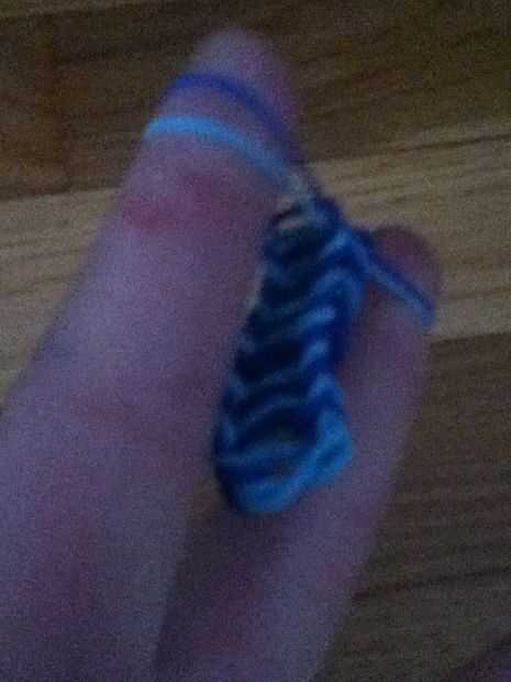 manera fácil de hacer una pulsera de cola de pescado en cualquier lugar.Paso 1: materiales Todo lo que necesitas esSu elección de colores de gomasy un clip C o SPaso 2: Poner la primera banda de goma de color en una figura de ocho en los dos dedos. P