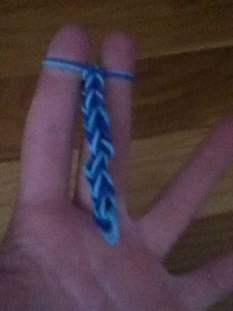 Paso 1: materiales!!! Telar o los dedos o una herramienta, gancho, bandas, clipPaso 2: 1 banda Colocar una banda en una x en la herramientaPaso 3: siguiente Lugar 2 bandas más en la herramientaPaso 4: bucle! Agarrar la banda inferior y coloque encima