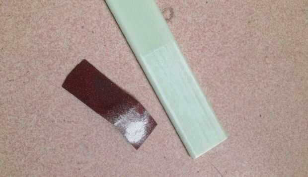 En la segunda ronda, use papel de lija de grano 2000 para hacer la zona de unión de madera y fibra de vidrio bruto (para hacer los bonos más firme por el pegamento del AB).