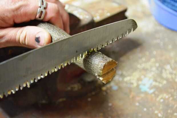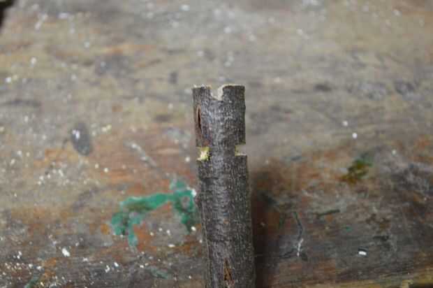 4. cortar 2 ranuras más a cada lado de la rama