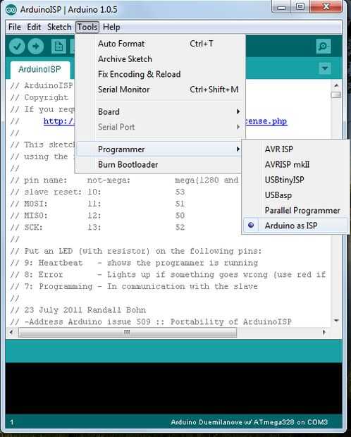 Programador > Arduino como ISP.