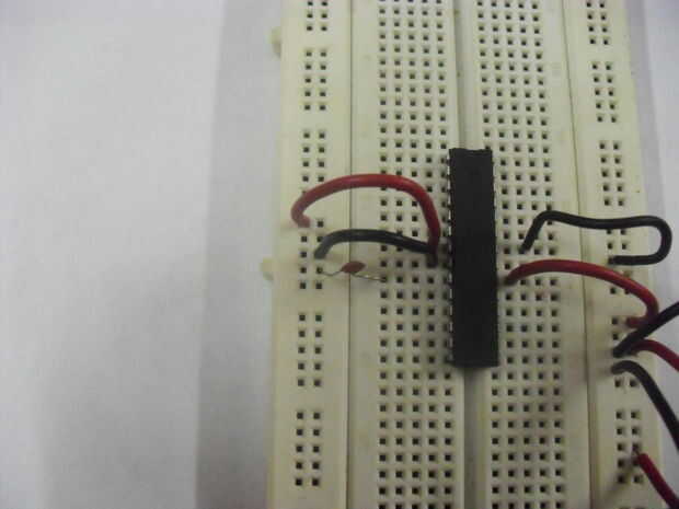 Añadir una resistencia de 10 k ohm entre los 5V y reset(pin1) de los 328 IC.
