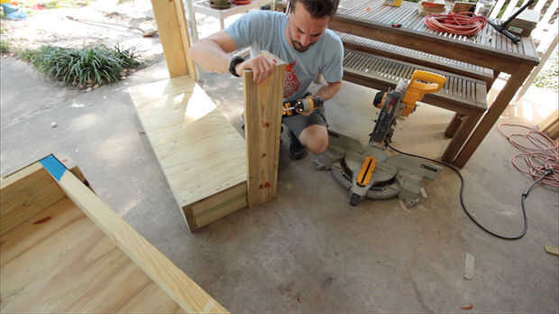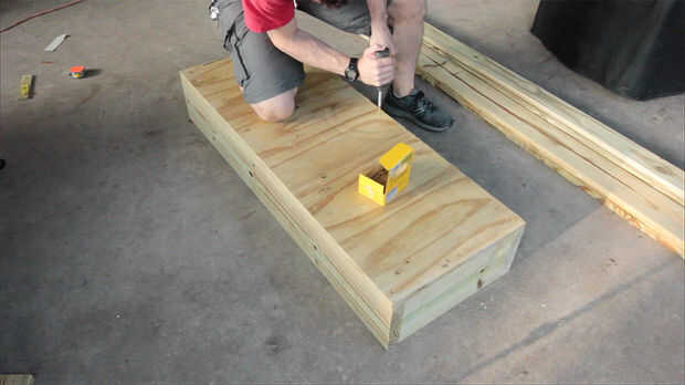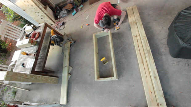 Había hecho y une las piernas para la jardinera de la misma manera pero sólo necesita dos piernas. La altura de estos es la altura total de la caja de arena y la altura de la caja jardinera.