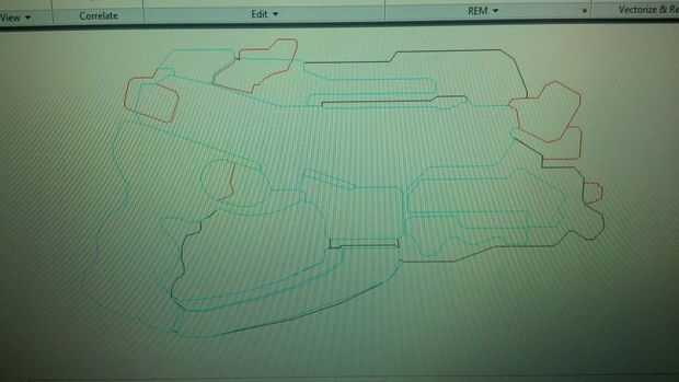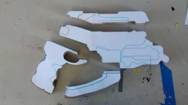 3.) escala los contornos para el tamaño de la pistola en el juego y les imprime. Se extendió fuera de la página, así que impreso en varios y les grabó junto. Recuerde que debe imprimir un "arma completo" para cada capa.