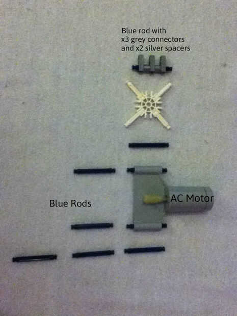 A continuación, adquirir el motor de CA y otras partes que se muestra en la foto y montarlos a la pared de la derecha como se muestra.
