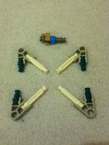 Ahora monta las piezas pequeñas como se muestra en la foto y añadirlos al componente de embrague del paso anterior. El embrague debe tener ahora una especie de forma de "pajarita". Tenga en cuenta la orientación de la porción de bloqueo tan.