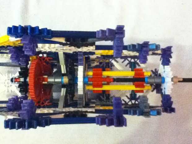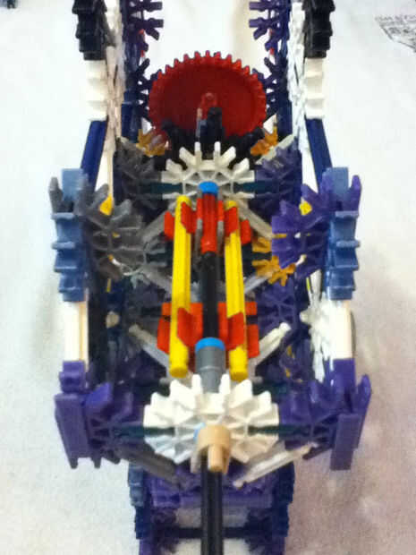 Usted podría ser capaz de ver el propósito del rayo freno ahora. Cuando el embrague está en posición posterior, une el engranaje inferior rojo para el equipo rojo superior, completando así el tren de la impulsión del motor para el árbol de impulsión y en última instancia, permitir que el motor para el montaje de barril. Sin embargo, cuando el embrague está en el frente posición más, el tren de la impulsión del motor está desconectado y al final poco de blanco (plata mostrado) barra (en el rincón del centro de la pajarita) debería dedicarse a hacer entre las barras del rayo de freno. Esto detiene la Asamblea barril gire bajo su propio impulso cuando se suelta el gatillo (no añadido).