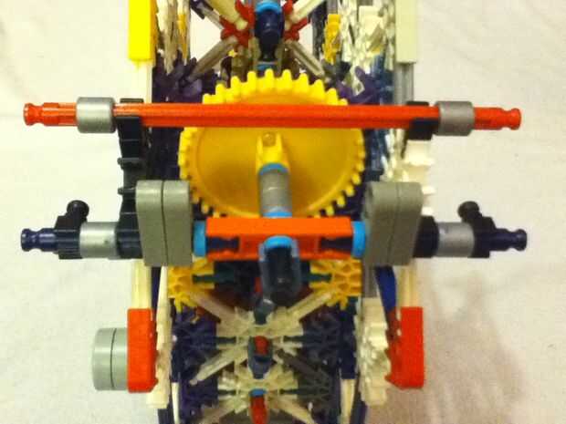 Cómo hacer un arma de Gatling de goma K'NEX con modos seleccionables en coche (29 / 65 paso)