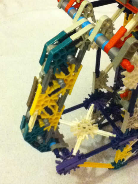 esto es un arma de gatling de K'nex mano que dispara barras amarillo casi 10 pies (que es cm 284 personas en Reino Unido)Es fácil de hacer y utilizar.Mis bandas tiraron las cañas muy duro y rápido, para no apuntar a nadie!!Este es un problema con el