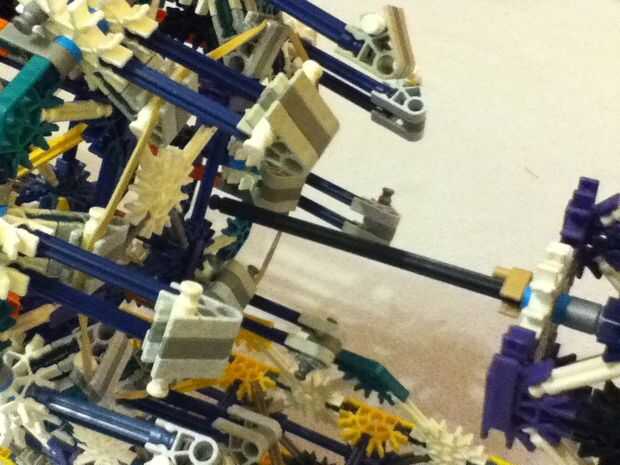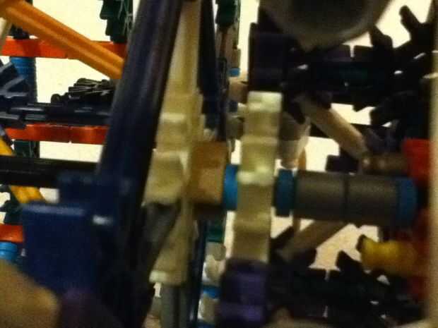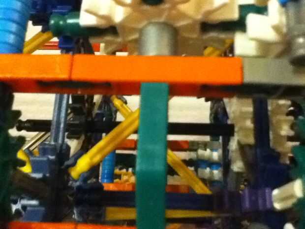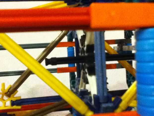 Ahora, deslice la parte posterior de la Asamblea de barril sobre el árbol de impulsión de la carcasa de transmisión. La barra de negro debe pasar a través de los dos conectores de círculo más posterior en el centro de la base del cañón. La cerradura tan en el árbol de impulsión debe participar el círculo blanco trasero para que dé el Asamblea de barril con el árbol.