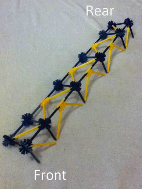 Una vez que 4 de los segmentos laterales del paso anterior, comenzar a conectarlos como se muestra para formar un tubo cuadrado. Los lados se orientan en la misma dirección alrededor del tubo. Las fotos muestran los primeros segmentos de 2 laterales conectados entre sí, seguido de los cuatro para formar el tubo. El tubo resultante debe ser bastante rígida y fuerte.