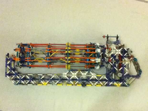 esto es un arma de gatling de K'nex mano que dispara barras amarillo casi 10 pies (que es cm 284 personas en Reino Unido)Es fácil de hacer y utilizar.Mis bandas tiraron las cañas muy duro y rápido, para no apuntar a nadie!!Este es un problema con el