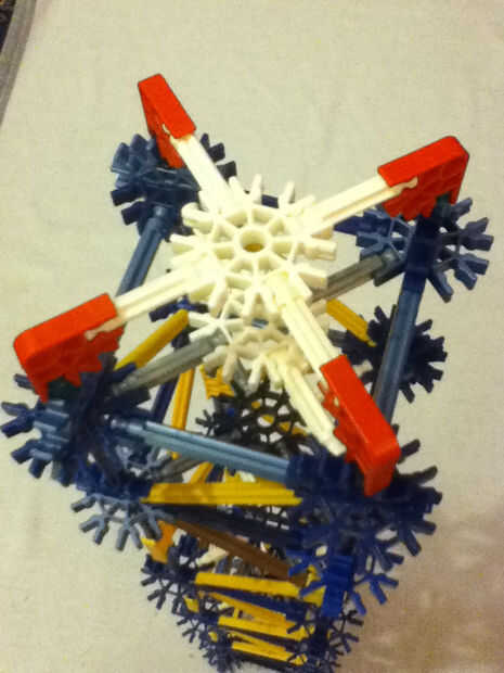 esto es un arma de gatling de K'nex mano que dispara barras amarillo casi 10 pies (que es cm 284 personas en Reino Unido)Es fácil de hacer y utilizar.Mis bandas tiraron las cañas muy duro y rápido, para no apuntar a nadie!!Este es un problema con el