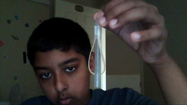 -En primer lugar tomar el tubo y la cinta elástico a él. (Cuadro 1) (Hacer fuerte)
