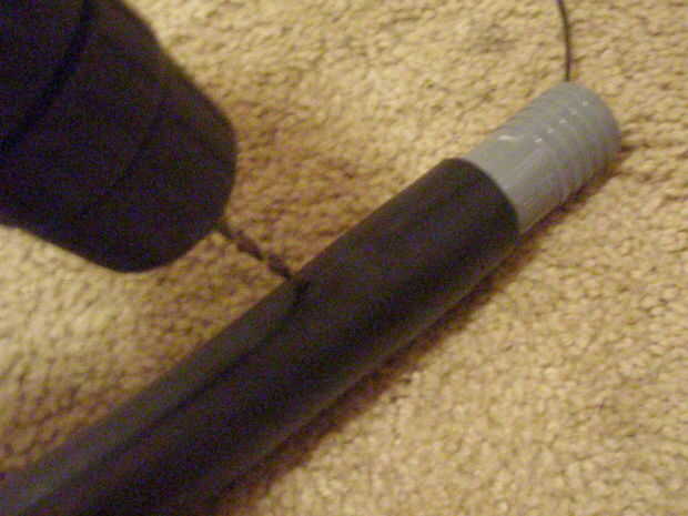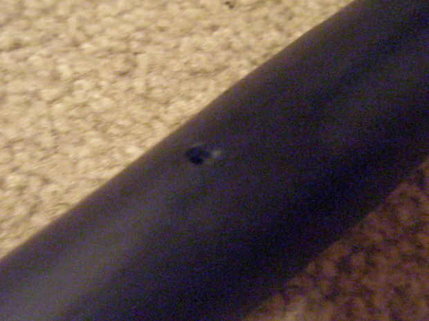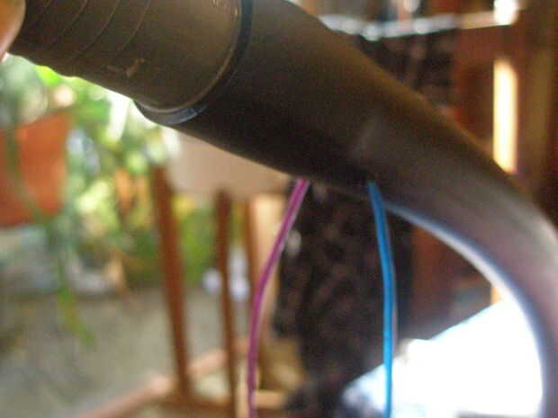 Ya que todo el circuito será dentro del tubo del bastidor, necesita perforar agujeros para enhebrar EL alambre hacia el exterior por lo que más tarde se puede envolver alrededor del aro. Usando un taladro de mano, hacer dos orificios grandes para EL alambre para caber a través de (pero no demasiado!) en el interior del aro alrededor de 1 pulgada de distancia. Taladro en el lado del aro con el conector ya, pero asegúrese de que no perforar a través del conector.