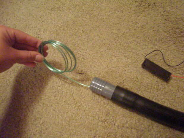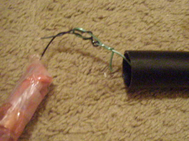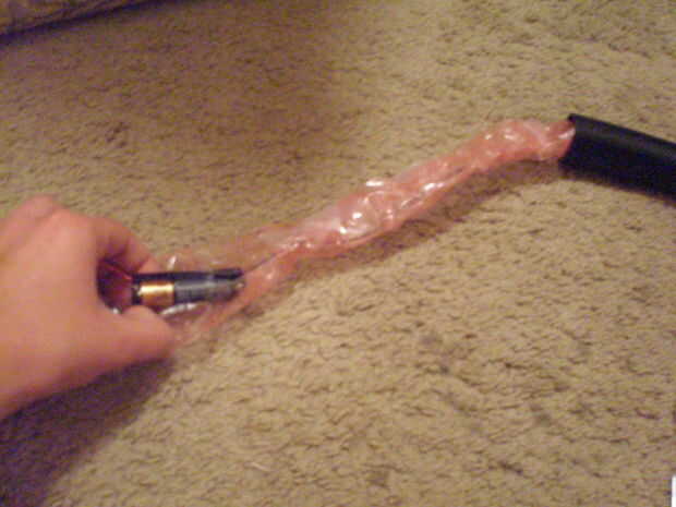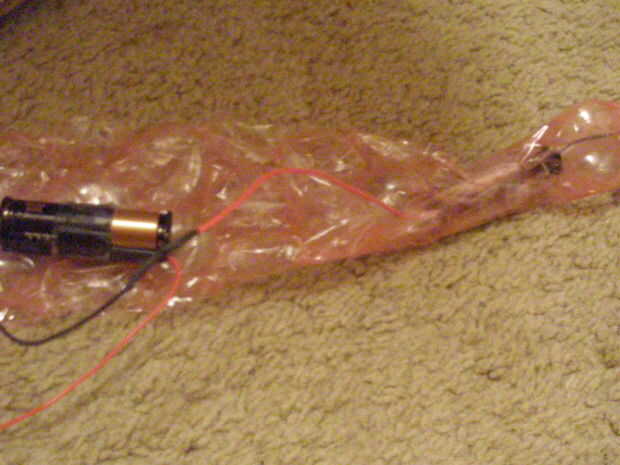 Esta parte me tomó varios intentos para conseguir derecho, pero sea paciente. Usé cinta aislante con cinta adhesiva las baterías en los titulares, sólo para estar seguro, pero parecía bastante seguras. Utilice un cable de calibre largo, más grande a través del tubo para tirar el circuito dentro del aro. Como usted tire aunque, envuelva el circuito adentro abrigo de burbuja para evitar confundir alrededor dentro de la tubería.