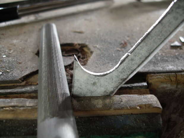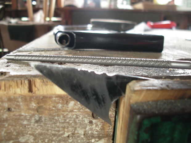 Para el filo hice un único cartabón, dejando el otro lado plano. Tomar en consideración qué lado desea el bisel, especialmente si usted es zurdo (hacerlo en el lado opuesto lo hice).