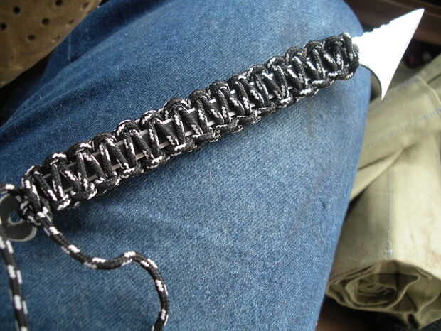 Lo único por hacer ahora es conectar el cable de la manija. Esto es para que sea más fácil y más cómodo para utilizar como una herramienta de corte y también para guardar el cable que tendrá que adjuntar a una plantilla, haciendo un verdadero arpón fuera de él. Idealmente el cable debe ser de paracord, pero si no se puede ejecutar hacia abajo a su tienda de excedentes del ejército local, hará cualquier cordaje 1/8".