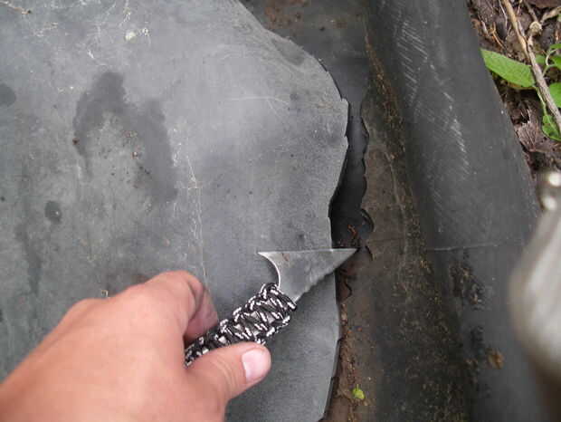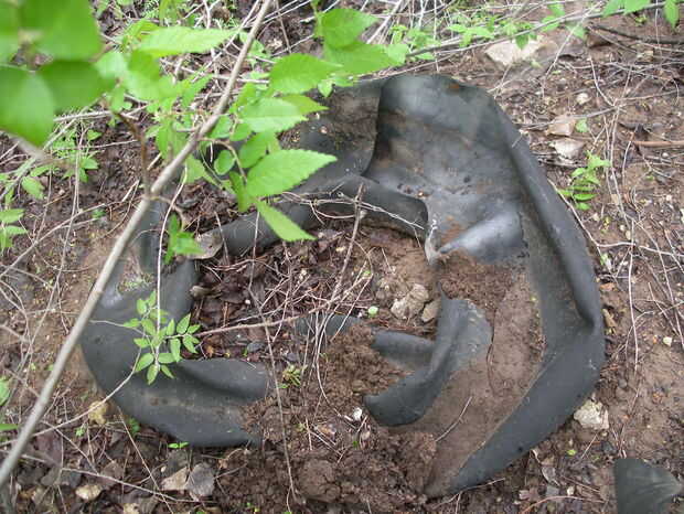fui a un arroyo donde generalmente hay agua clara para demostrar cómo utilizar el arpón para atrapar un pez, pero la lluvia de anoche y esta mañana ha hecho tan fangoso como el mississippi. Así que no perder la oportunidad de cortar un trozo de una cámara de neumático a utilizar ( ya que mi ayudante comió las plantillas de mis botas.