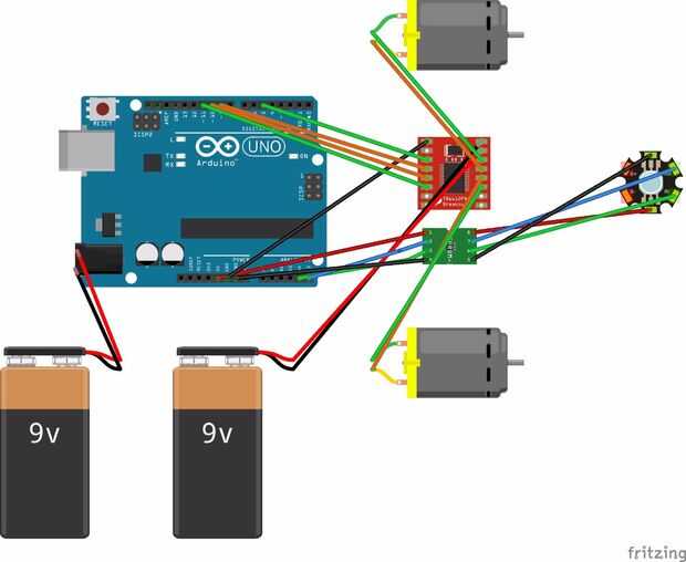 Tamiya Twin-Motor caja de cambios: https://www.pololu.com/product/61DRV8833: https://www.pololu.com/product/2130Adafruit sensor de color: http://www.adafruit.com/product/1356