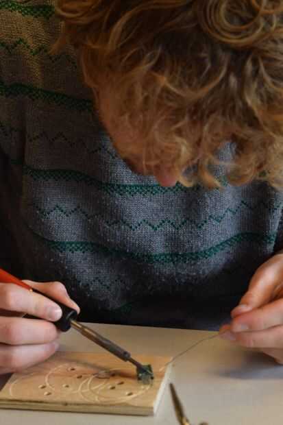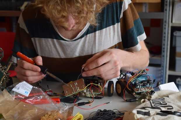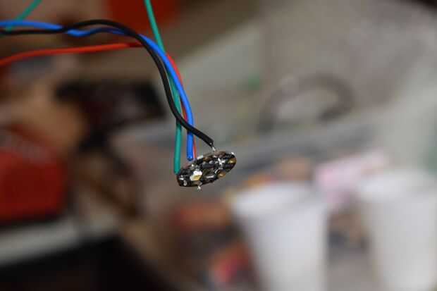 Se sueldan los cables para conectar a los pines en el tablero y en las clavijas del sensor de color.