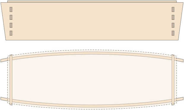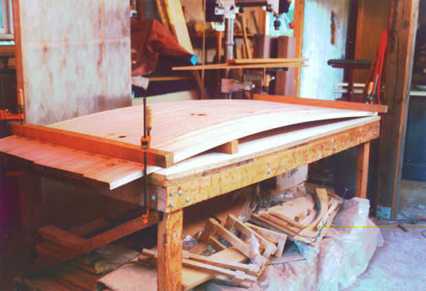 Los lados fueron lijados y sujeta a un banco con un espaciador debajo, para conseguir que a la idea de doblar (Foto 3).