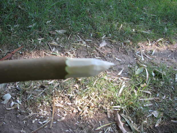 Ahora tomó el otro extremo del dardo pronto-a-ser y tallado una punta, asegurándose de hacerlo fuera del centro para que la punta no fue hecha de la madera interior mullida.