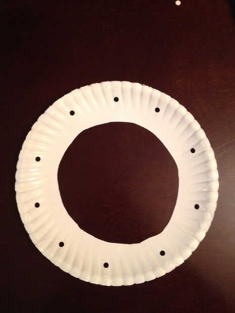 -10 de golpe uniformemente los agujeros en la placa en el círculo exterior restante -Hacer los agujeros directamente frente a la unos a otros. * Nota: Puede agregar más agujeros para un diseño más complejo