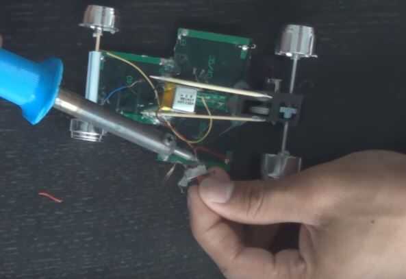Primero fije la batería con el pegamento al coche.
