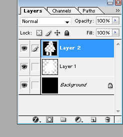 Para hacerlo parecen tener profundidad, vamos a utilizar un efecto de degradado, mezclando el negro en el blanco. Esto hará que la máquina de estereograma darle profundidad cuando procesa. Luego utiliza la herramienta seleccionar para seleccionar el área fuera de capa 1, saltaron hacia la capa 2 y llena la selección con negro.