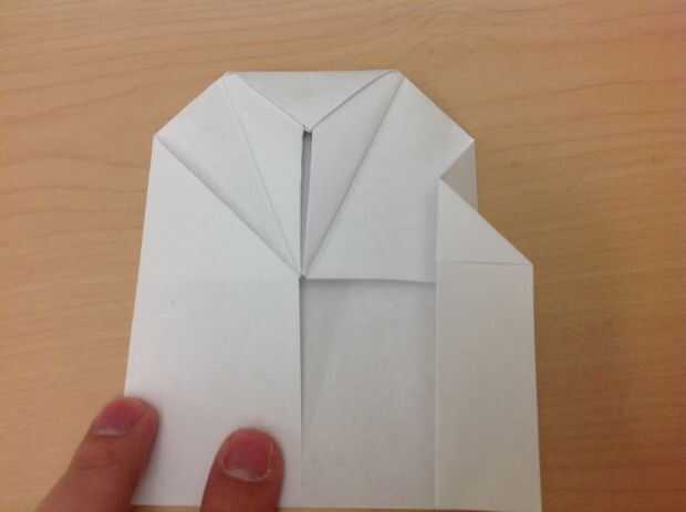 6B) ahora doblar la punta de la espalda derecha y alinee el borde derecho con el cuerpo.