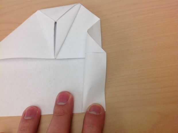 6 d) justo como antes, doblar la punta del ala izquierda a la izquierda, alinear a la izquierda con el cuerpo.
