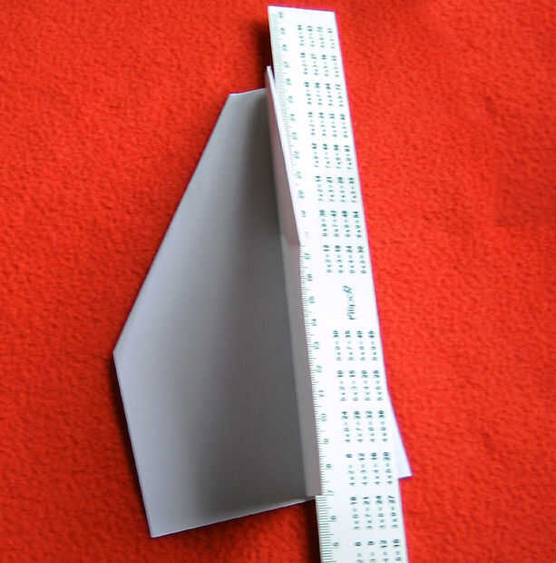 Utilice una regla para formar las alas. Tenga en cuenta que el doblez es diagonal y comienza desde el centro de la nariz a aproximadamente 2 pulgadas de la cola.