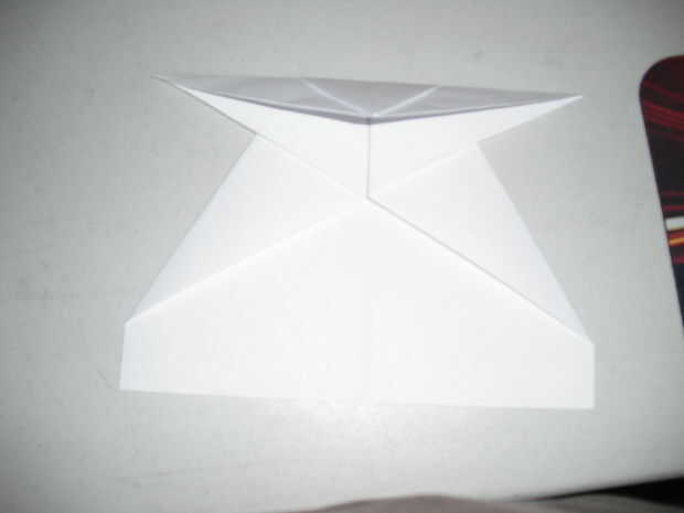 y ahora, se dobla el extremo superior para que los pliegues se reunieron en el último paso. Ahora Compruebe la tercera imagen y doblez como se muestra, luego repita en otro lado.