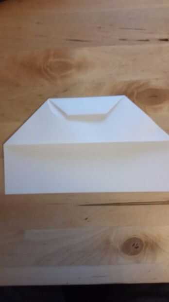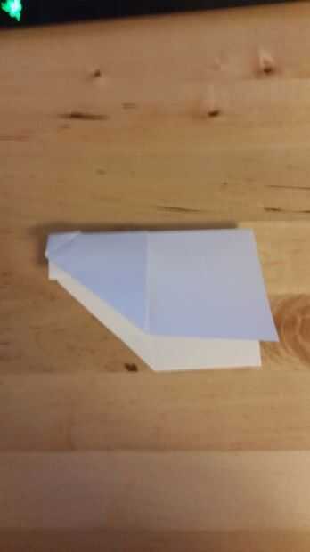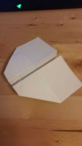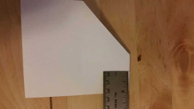 Después de formar la nariz, ahora se pliegan las alas. Primero debemos doblar el papel por la mitad, en el sentido de la anchura (8.5" parte del papel) ahora, mide 1" desde el pliegue que acaba creado, vamos a crear otro doblez. Hacerlo en cualquier lado se creará el gancho agarrador doble de 1" que tenemos de cuando lanzar el avión. El papel debería verse algo así como un avión de papel ahora.