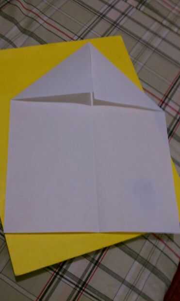 Doblar la parte superior dos esquinas hacia adentro para que se encuentran en el centro del pliegue y forma un triángulo rectángulo