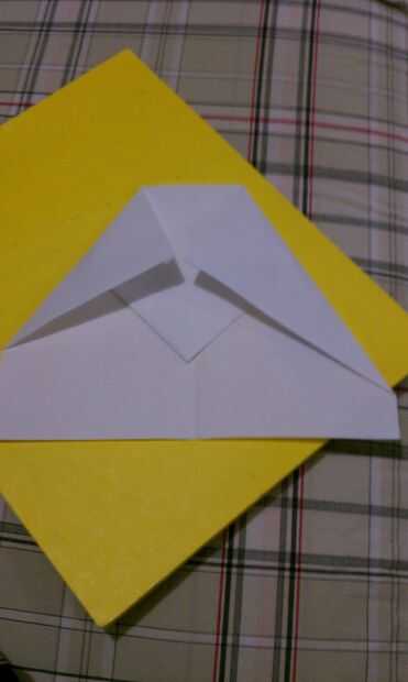 a continuación doblar las dos esquinas superiores en el pliegue medio, por lo que se forma una especie de diamante en la parte superior y un pequeño punto en la parte inferior.