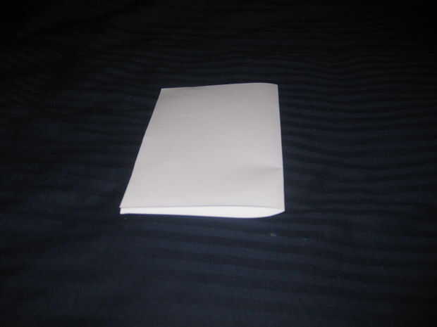 Se trata de cómo hacer el avión de papel más rápido que he visto. Llaman el águila.Paso 1: Doblar por la mitad Este es un paso fácil. Sólo doblar una hoja de 8,5 x 11" de papel en medio abajo el centro como en la foto y luego abrirlo para arriba otra