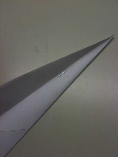 2. grapa del fuselaje aproximadamente 2 ½ a 3 pulgadas de nuevo desde el punto frontal del avión tan cerca el pliegue debajo del ala como sea posible.