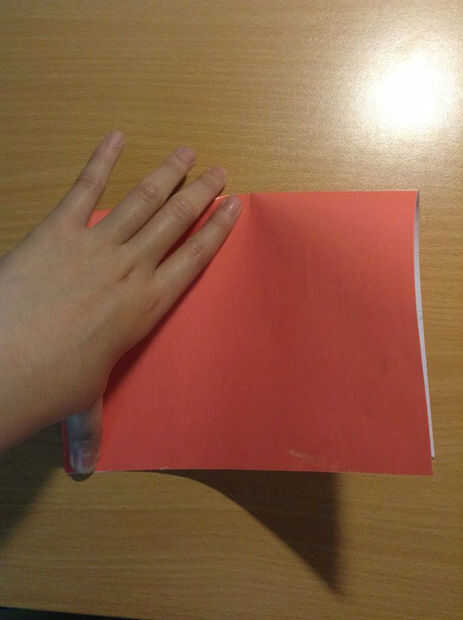 Doble el papel en haft, hacer un pliegue en el centro del borde solo doblez (como en la foto) por lo que cuando dejas el papel a él de forma normal, habrá un cresae en el centro del papel