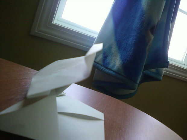 Ahora, el avión del tirón de lado y doble como esta, luego hacer lo mismo al otro lado