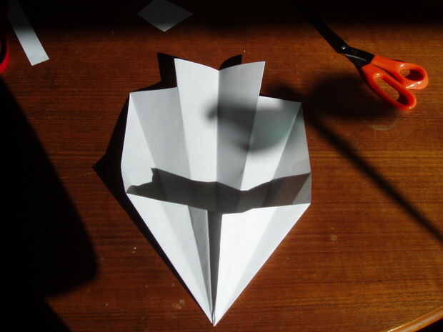 Después de haber cortado esas esquinas, desplegar el avión así que parece que el paso 3 (con pliegues y cortes en ella).