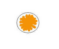 2 - tubo un pequeño 'montón' de guinda con la punta #5 en el centro de la uña de la flor, como se indica en el grande punto naranja en la figura 2.