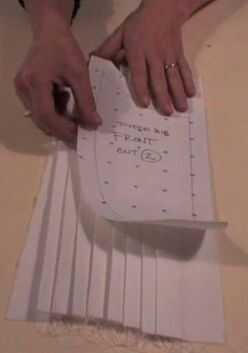 Lugar el delantero Cut Out en la parte superior la pieza con los pliegues hacia la izquierda. Con el centro de la pieza delantera haciendo coincidir con el borde de su tela y en su lugar y cortar.