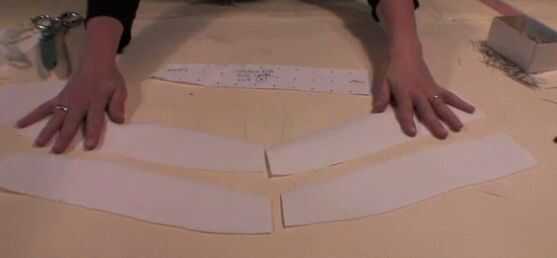 Corte patrón número 3 (este es su collar) de su tela y la entretela, frente y dorso.