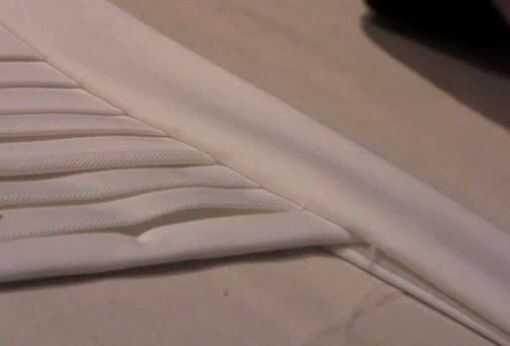 Voltear al otro lado y gire la parte interior del collar (prensa plana) y luego doblar en la pieza en sí mismo hasta el final y coser con una puntada