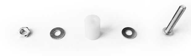 Utilizamos perno, la tuerca, la arandela y el espaciador en nuestro proyecto para fijar las tiras. Las arandelas pueden reducir la tensión en el borde del agujero en la tira y evitar que las articulaciones se rompa.